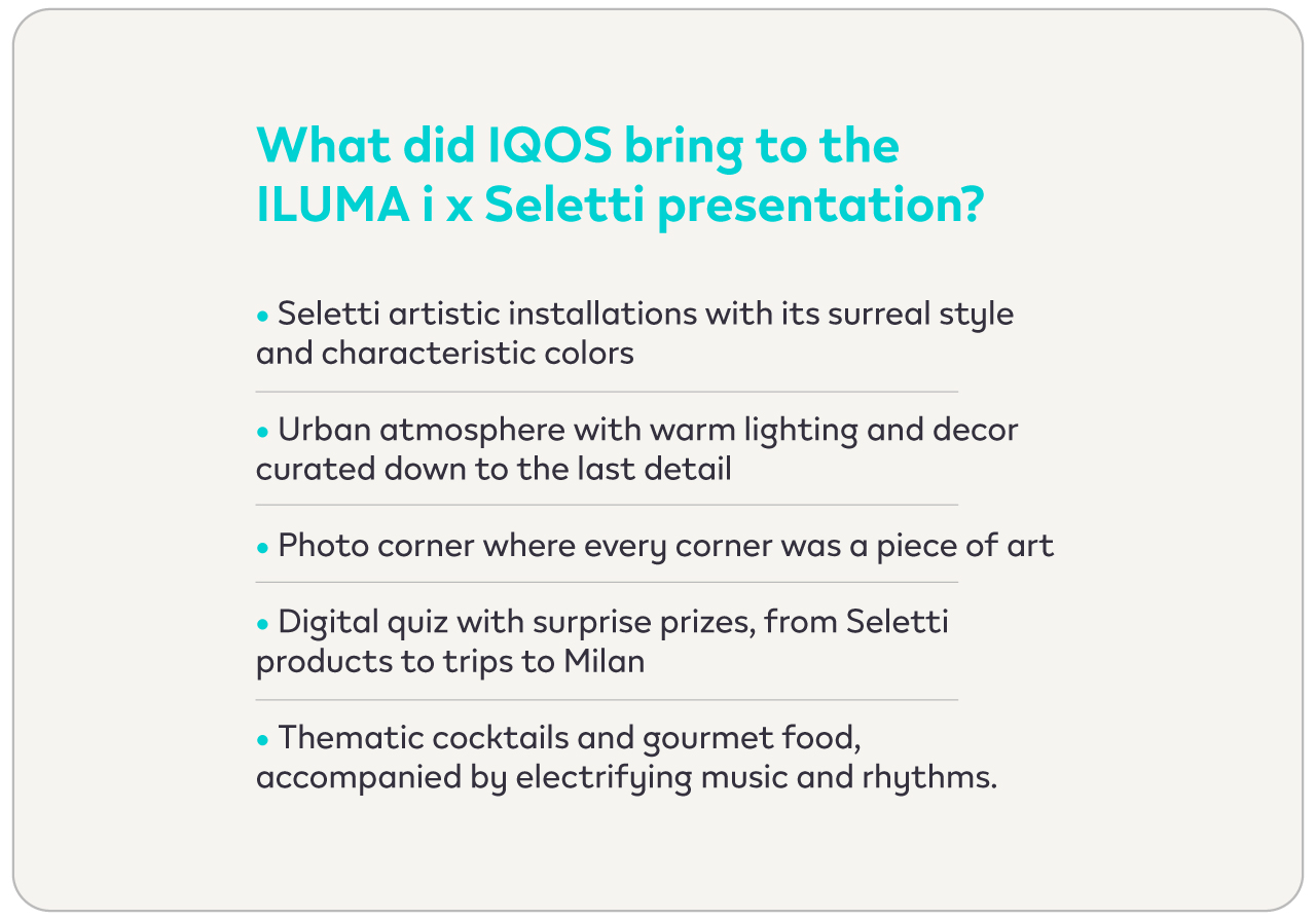 This event is the embodiment of the IQOS philosophy: to always be at the center of the current, challenging the ordinary and exploring the new. The ILUMA i x Seletti edition is itself a symbol of this spirit, where technology meets art and functionality meets identity.